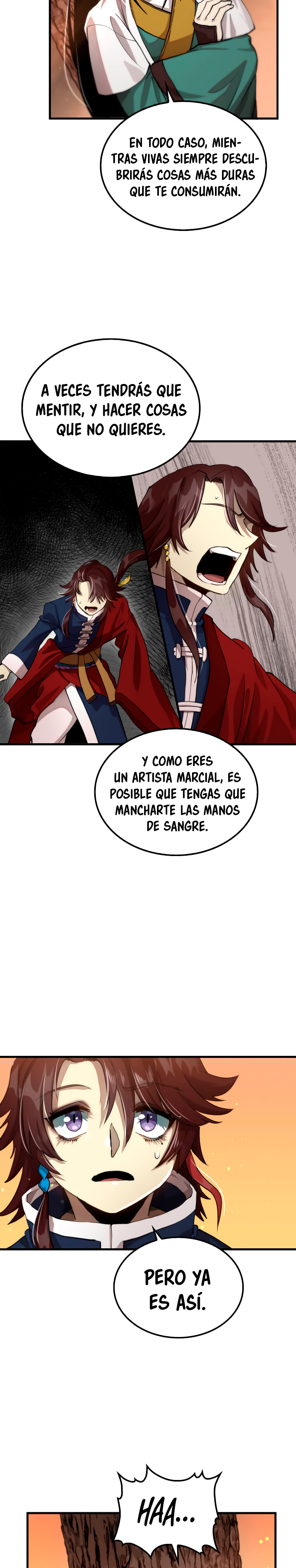 En fin, mientras vivas, te seguirá desgastando lo difícil que es el mundo. Inevitablemente tendrás que mentir y hacer cosas que no quieres hacer. Como eres un artista marcial, puede que llegue el momento en que tengas que manc harte las manos de sangre.